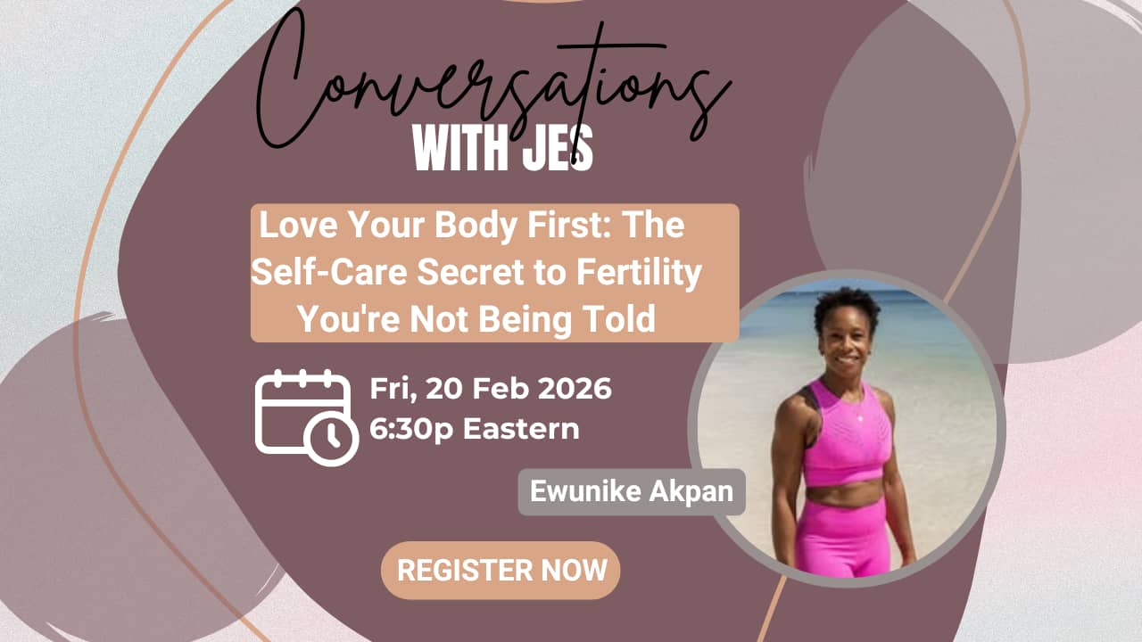 Our next Conversations with Jes is going to be POWERFUL! Join us for "Love Your Body First: The Self-Care Secret to Fertility" with Ewunike Akpan.